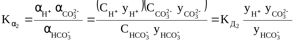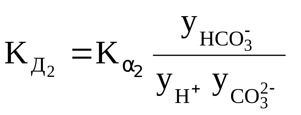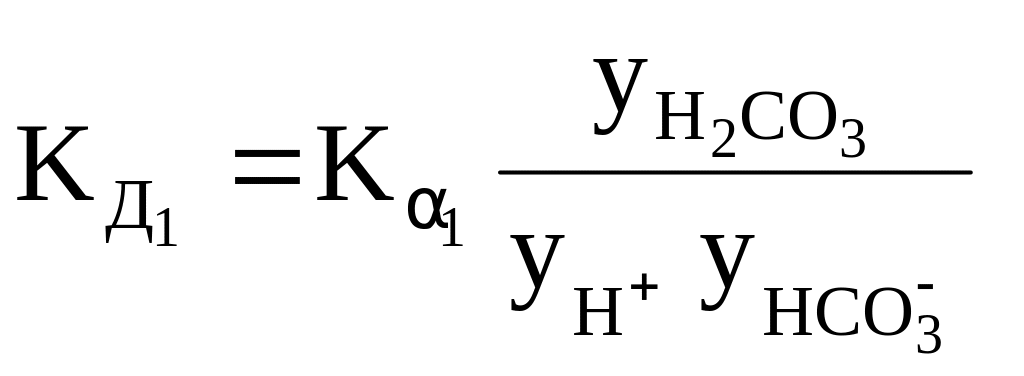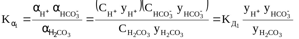Так, для концентрированного раствора слабой угольной кислоты, в отличие от разбавленного раствора, выражения для константы диссоциации этой кислоты по первой и второй ступеням в растворах, имеющих молярную концентрацию, будет иметь вид: