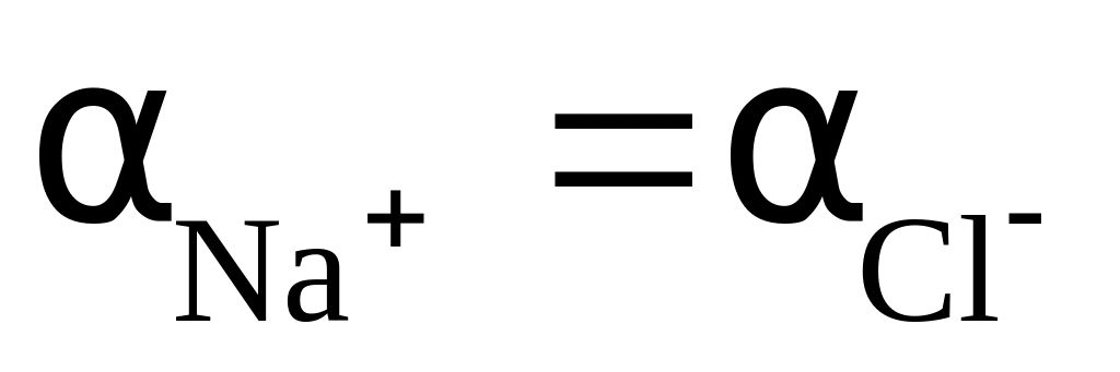 Пример 2. Найдите активность ионов Na+ и Сl– в 0,001 М растворе NaCl. Ионная сила 0,001 М раствора NaCl (см. уравнение 7) равна