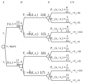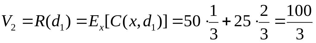Если - вершина типа “решение“, тогда - математическое ожидание потерь (дохода) при выборе наилучшего решения из и последующими наилучшими решениями.