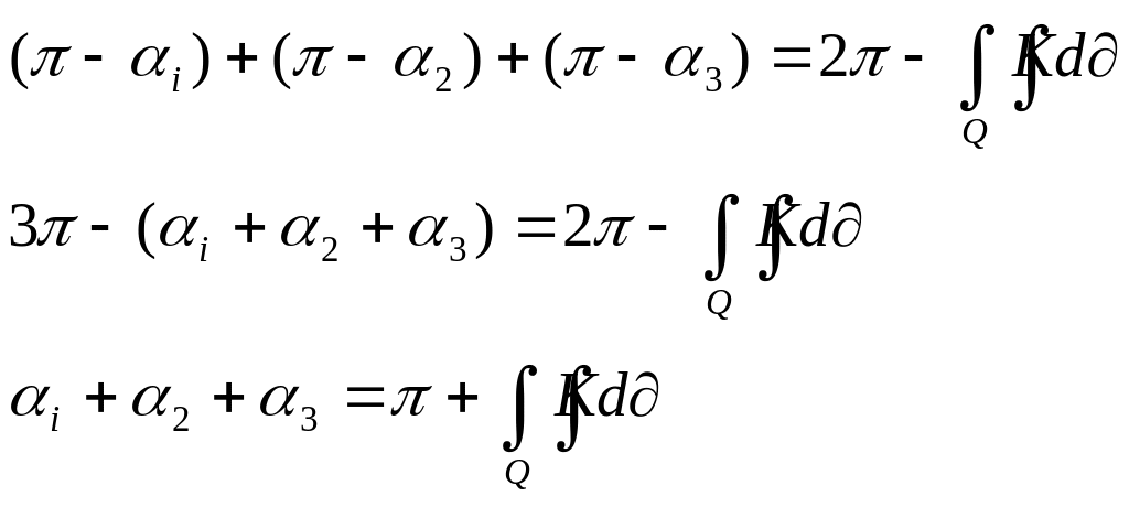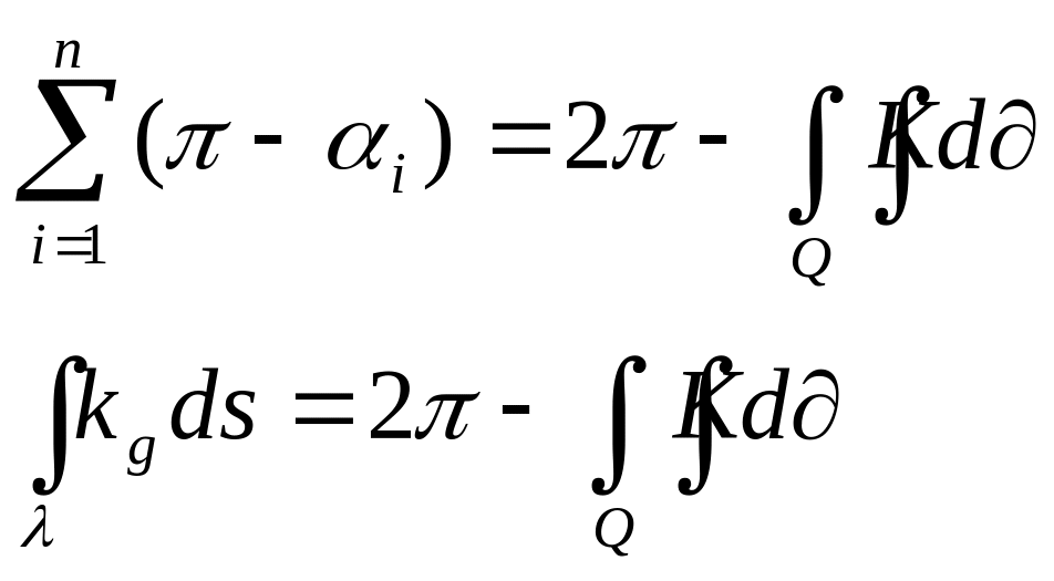 Припустимо, що область Q обмежена трьома геодезичними лініями (геодезичний трикутник):