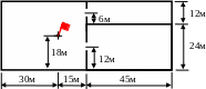 Здание школы II степени огнестойкости. Временные параметры: t1 = 12 мин; t2 = 25 мин; Линейная скорость распространения горения: Vл = 0,6 м/мин.