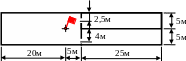 Цех по производству фанеры II степени огнестойкости. Временные параметры: t1 = 10 мин; t2 = 25 мин; Линейная скорость распространения горения: Vл = 0,8 м/мин. |