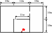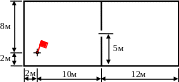 Помещение текстильного производства II степени огнестойкости. Временные параметры: t1 = 8 мин; t2 = 25 мин; Линейная скорость распространения горения: Vл = 0,6 м/мин. |