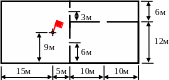 Здание музея II степени огнестойкости. Временные параметры: t1 = 9 мин; t2 = 15 мин; Линейная скорость распространения горения: Vл = 1 м/мин. |