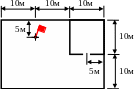 Помещение поликлиники I степени огнестойкости. Временные параметры: t1 = 10 мин; t2 = 26 мин; Линейная скорость распространения горения: Vл = 0,8 м/мин. |