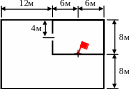 Жилой дом II степени огнестойкости. Временные параметры: t1 = 5 мин; t2 = 12 мин; Линейная скорость распространения горения: Vл = 0,8 м/мин.