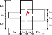 Здание архивохранилища II степени огнестойкости. Временные параметры: t1 = 12 мин; t2 = 15 мин; Линейная скорость распространения горения: Vл = 1 м/мин. |
