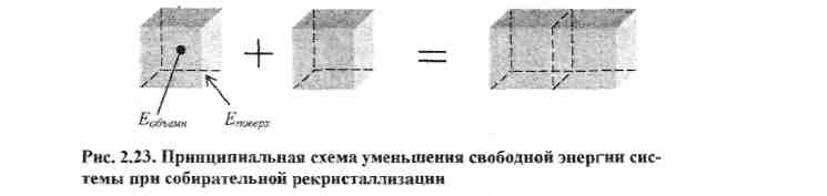 При слиянии (поглощении) зерен объемная энергия остается неизменной - у исходных двух мелких кристаллов и образовавшегося крупного она равна 2EобъемнВ то же время поверхностная энергия отличается: 12Еповерх и 10Еповерх