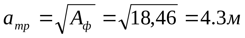 Размеры подошвы фундамента назначают кратным 100 мм. Тогда размеры подошвы фундамента а х а =4,3х4,3 м
