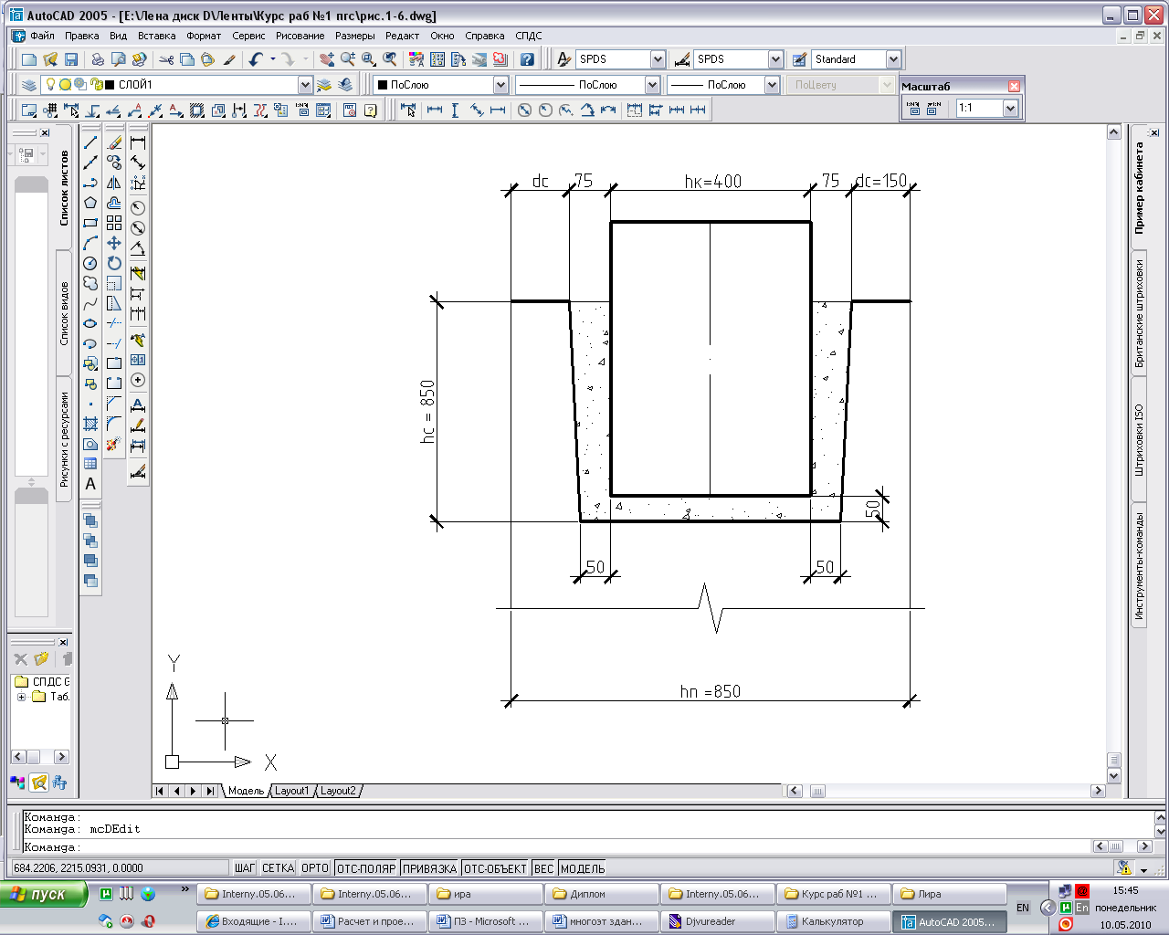 Верхний обрез фундамента принимаем на отметке -0,15 м. Назначаем размеры поколонника (рис. 9)
