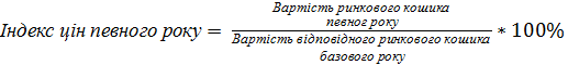 Ринковий кошик – це набір товарів та послуг, який приймається за масштаб для виміру динаміки цін. Базовий рік – це рік, з яким робиться порівняння.