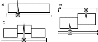 На рис. 2 (а,б,в) наведено можливі схеми розміщення баштових кранів при різній конфігурації будинку.