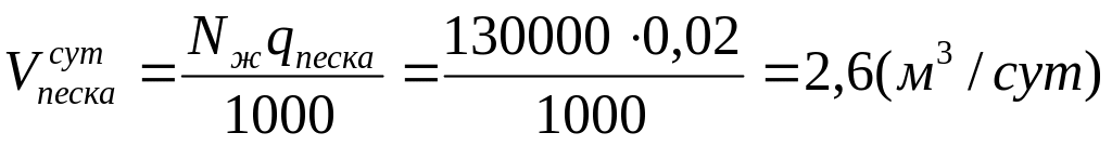 qпеска=0,02л/чел*сут – количество песка, задерживаемого песколовкой, на 1 жителя в сутки;