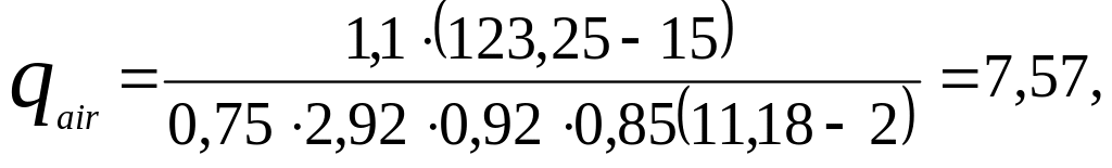 Удельный расход воздуха qair, м3/м3 очищаемой воды определяется по формуле: