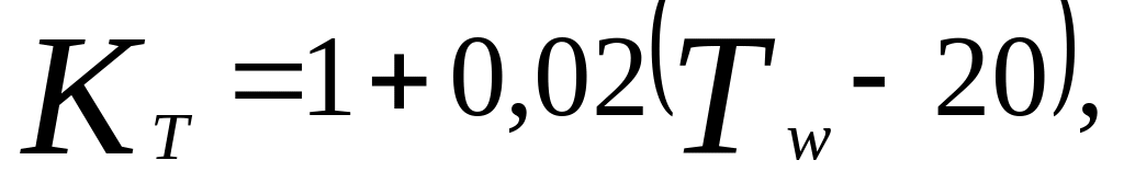 KT — коэффициент, учитывающий температуру сточных вод и определяется по формуле: