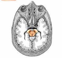 В – Уровень среза мозга на котором видно черную субстанцию.