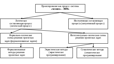 Рассматривая проектирование как творческий процесс, где во взаимодействии используются логические и интуитивные методы, его можно определить как процесс функционирования системы «человек—ЭВМ». Основные составляющие последнего представлены на рис. 12.2.