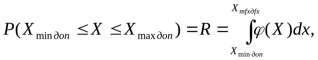 где R — надежность, т. е. вероятность нахождения случайной величины X в допустимых пределах Хmin доп, Хmax доп — минимально допустимом и максимально допустимом.