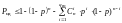 В режиме исправления ошибок вероятность ошибки декодирования кодового слова на выходе декодера равна: