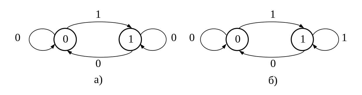 Рис. 2.1. Граф схемы переходов: а) Т–триггера, б) D–триггера