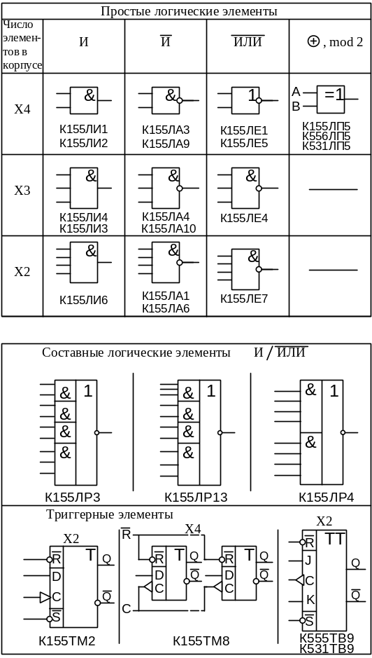 Рис. 2.2. Примеры микросхем традиционных серий типа ТТЛ и ТТЛШ