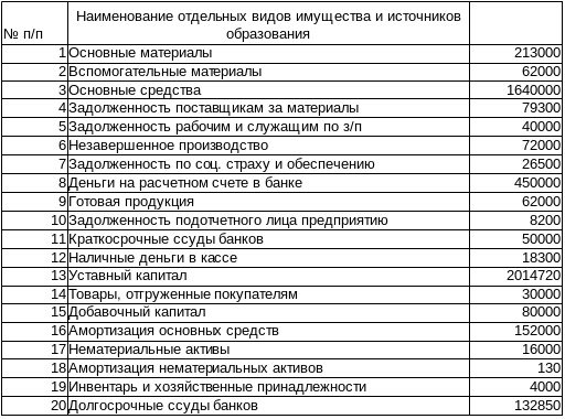 Произвести группировку имущества по составу, размещению и по источникам его образования на основании следующих данных: