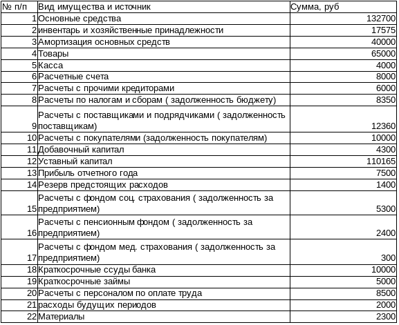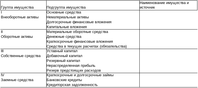 имущества организации и его источников
