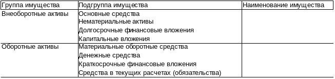 Группировку имущества организации произвести в таблице: