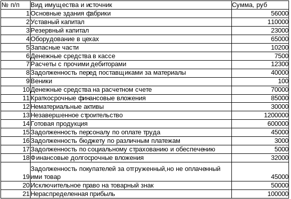 На основании приведенных данных составить бухгалтерский баланс, сгруппировав его статьи в разделы: