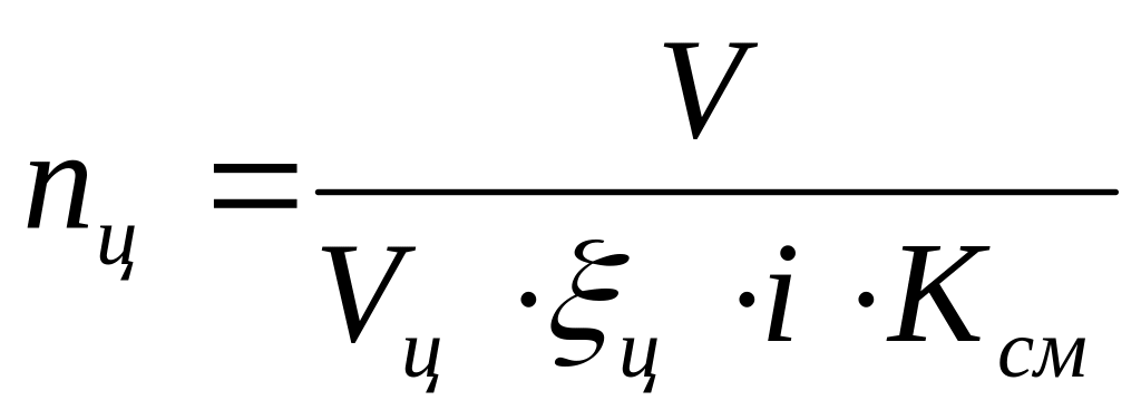 где Vц – емкость автоцистерны, м3; ц – коэффициент использования емкости автоцистерны при заполнении топливом, ц = 0,94…0,97; i – число оборотов автоцистерны за смену; Ксм – коэффициент сменности.