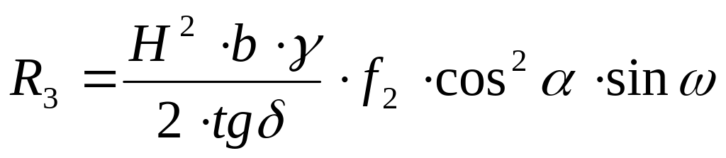 где Н – высота вала перемещаемого грунта обычно равная высоте отвала бульдозера, м; – объемный вес грунта, = 15000…19000 Н/м3; – угол естественного откоса грунта, = 30…40°; f1 – коэффициент трения грунта о грунт, f1 = 0,7…1,2; iп – подъем (или спуск) местности.