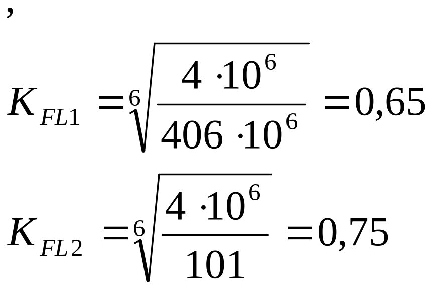 Значение КFL, принимаемые к расчету, могут быть в пределах 1< КFL <2,08 при твердости (<350НВ). Принимаем КFL1=1; КFL2=1.