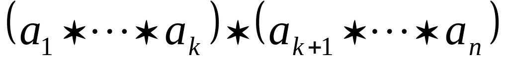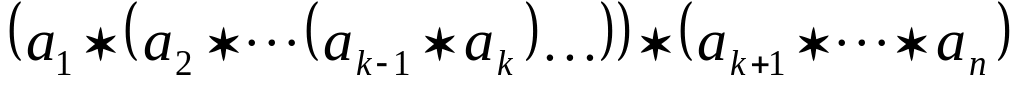 Свойство 2.7. Результат перемножения n элементов в полугруппе не зависит от способа расстановки скобок.