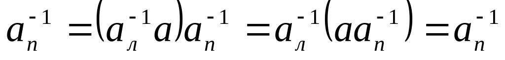 Свойство 2.9. Если к элементу полугруппы a существуют левый и правый обратные элементы, то они равны.