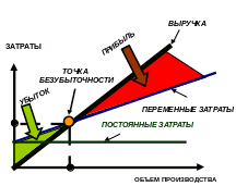 Анализ зависимости переменных затрат, постоянных затрат и выручки от объема производства позволяет определить точку критического объема производства (мертвую точку или точку рентабельности), при котором величина выручки от реализации равна ее полной себестоимости.