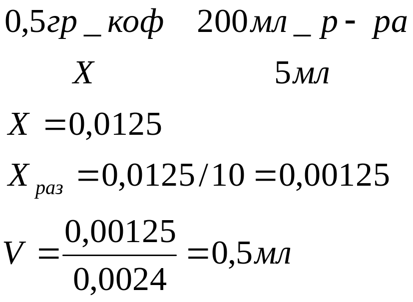 На титрование пошло 0,59 мл – ЛФ соответствует прописи.