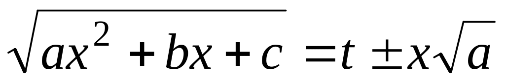 Существует несколько способов интегрирования такого рода функций. В зависимости от вида выражения, стоящего под знаком радикала, предпочтительно применять тот или иной способ.
