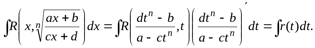 Если в состав иррациональной функции входят корни различных степеней, то в качестве новой переменной рационально взять корень степени, равной наименьшему общему кратному степеней корней, входящих в выражение.