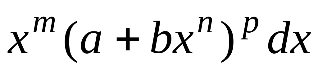 Как было доказано академиком Чебышевым П.Л. (1821-1894), интеграл от биноминального дифференциала может быть выражен через элементарные функции только в следующих трех случаях: