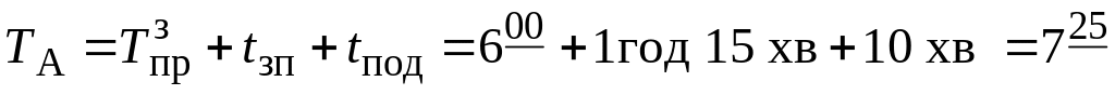 Тривалість подачі вагонів із станції на вантажний фронт , та тривалість прибирання вагонів на станцію , год |