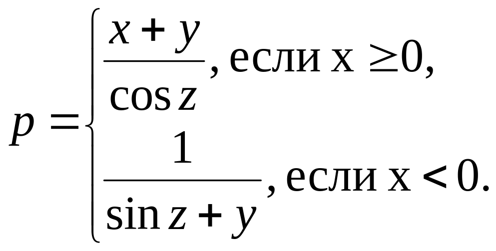 if (x >= 0) p = (x + у)/cos(z); else p = 1/(sin(z) + y);