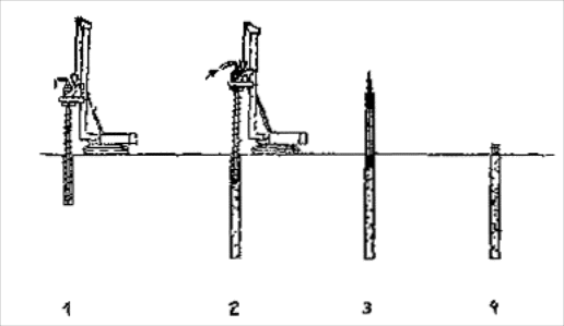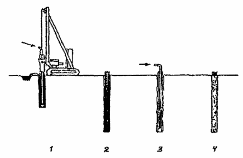 Рис.10.3. Технологическая схема устройства буроинъекционных свай с использованием шнекового бурения: