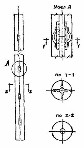 8.10.Буроинъекционные сваи диаметром 150 мм в случае их использования для усиления оснований существующих зданий при нагрузках до 200 кН допускается армировать одиночными стержнями (рис. 8.2) при условии передачи на последние всей величины продольного усилия, возникающего от действующей на сваю нагрузки, то есть без учета сопротивления бетона, используемого в данном случае лишь для целей антикоррозийной защиты арматуры и повышения сопротивления сваи продольному изгибу.