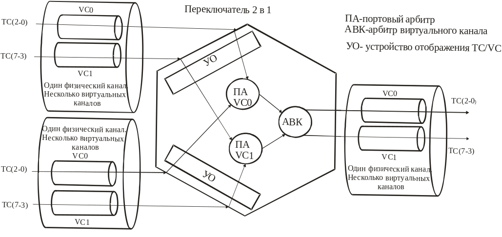 Переключатели используют два типа организации для каждого выходного порта: портовую организацию доступа и организацию доступа через виртуальные каналы VC.
