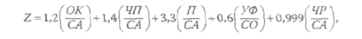 Способностью предсказать банкротство предприятия обладает также Z-показатель, предложенный профессором Нью-Йоркского университета Е. Альтманом. Для оценки вероятности банкротства эмитента используют уравнение регрессии: