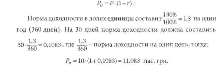 К примеру, выдана ссуда в размере 10 тыс. грн на один месяц (30 дней) под 130% годовых. Тогда размер платежа к погашению составит: