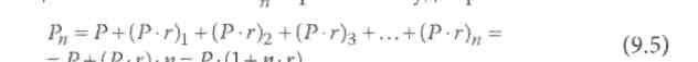 Если исходный инвестируемый капитал равен Р, а требуемая норма доходности за 1 год - г (как коэффициент в долях единицы от начальной суммы Р), тогда считается, что инвестиция сделана на условиях простого процента, если инвестированный капитал ежегодно увеличивается на величину (Р • г). Таким образом, размер