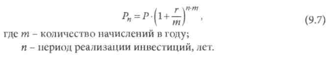 В практике вложений нередко используются внутригодовые процентные начисления, т. е. при выплате дивидендов на вложенный капитал нередко оговаривается не только величина годового процента, но и частота выплаты в течение года. В этом случае расчет ведется по формуле сложных процентов по подинтервалам и по ставке, равной пропорциональной доле исходной годовой ставки: