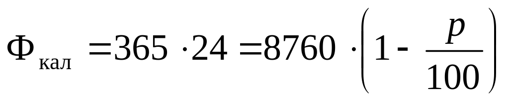 де Феф — ефективний корисний фонд роботи устаткування (години).