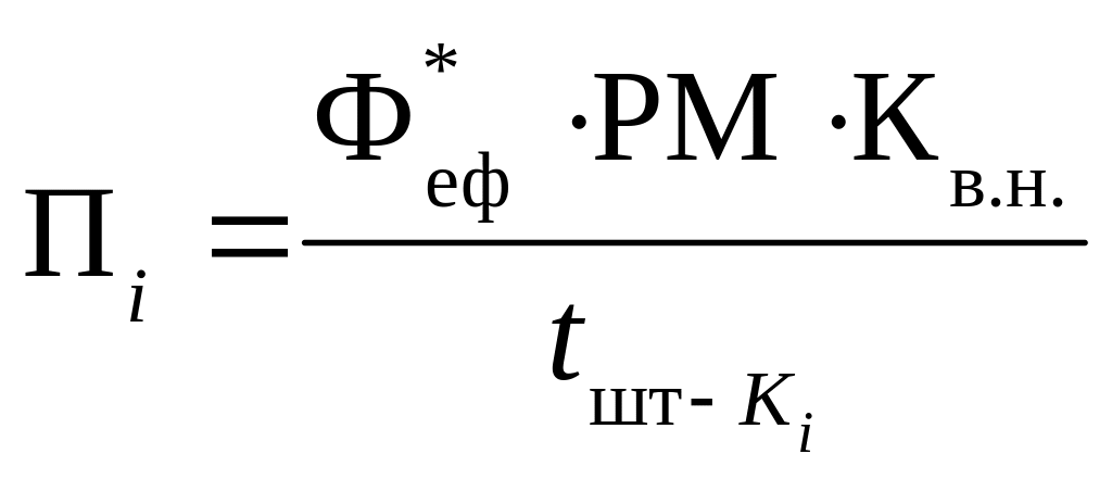 Пв — продуктивність устаткування у відповідних одиницях виміру і-ї продукції за годину;